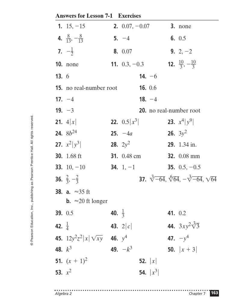 Glencoe Algebra 1 Chapter 8 3 Answer Key